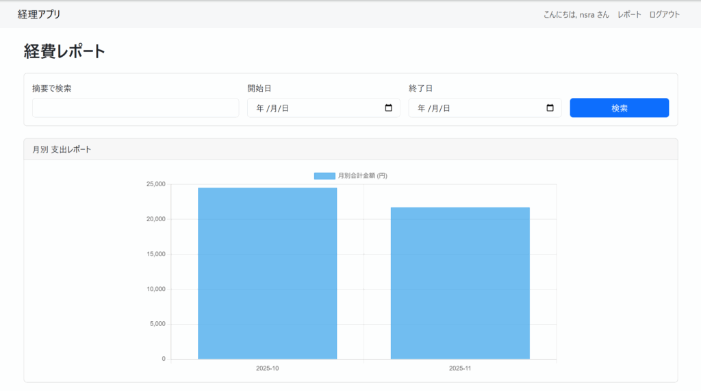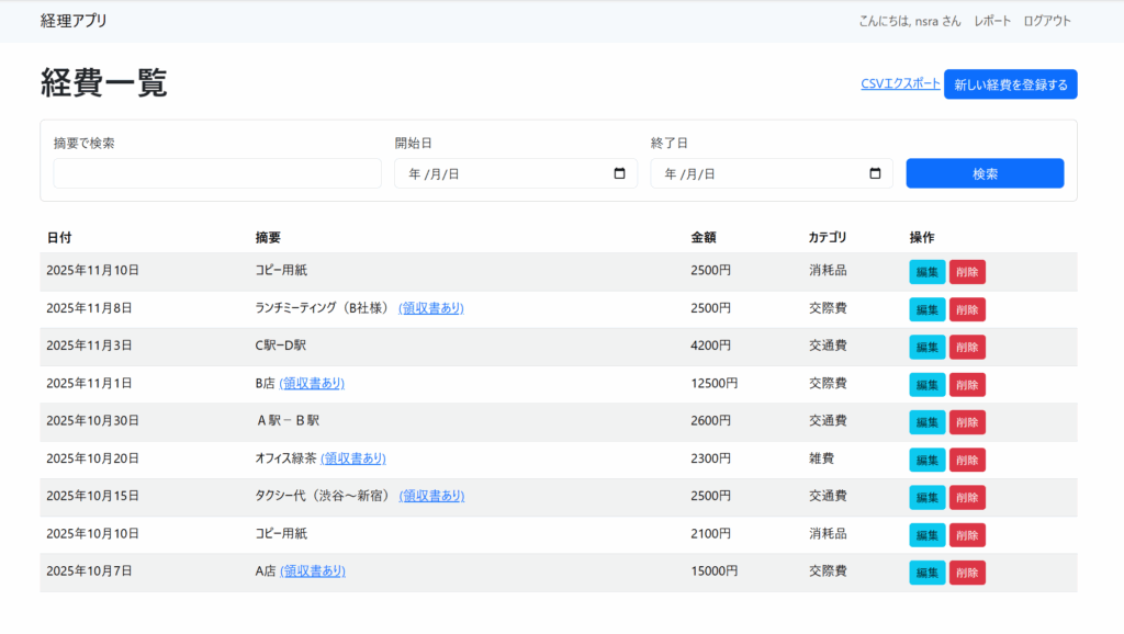『先週のデータだけ』『このプロジェクトの経費だけ』を日付や摘要でかんたん検索&CSVダウンロード。