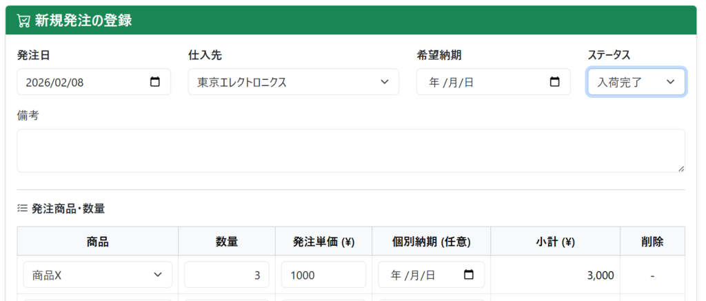 - ✅ 在庫台帳: 在庫数が「-1」され、適正在庫判定が行われます。