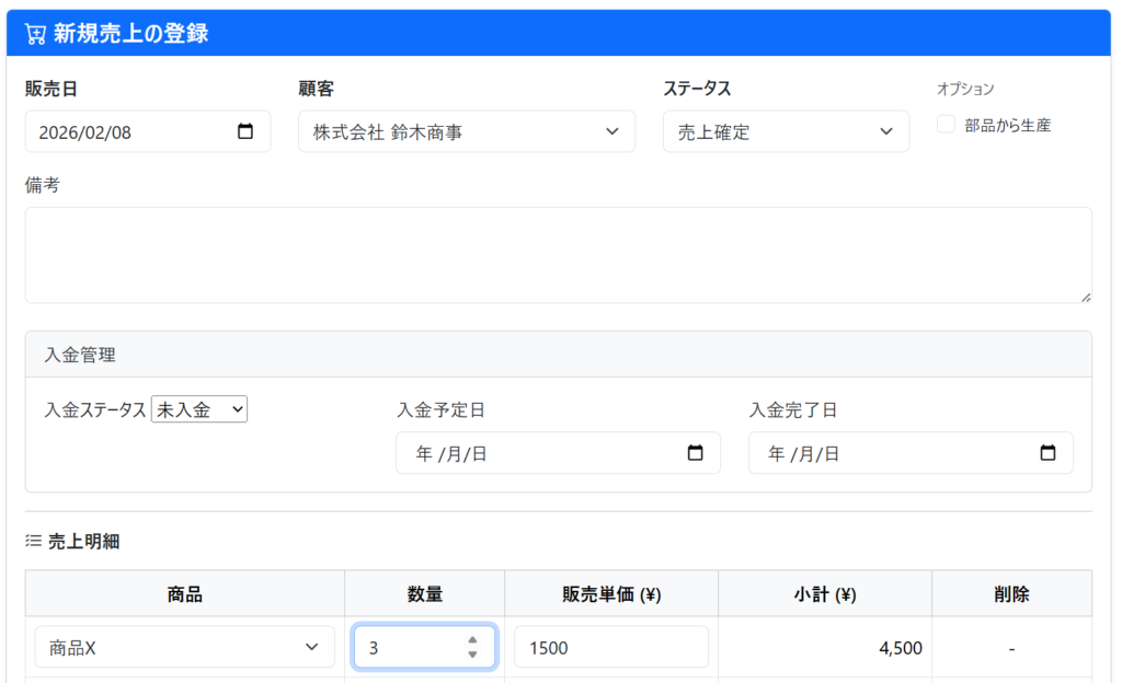 - ✅ 売上台帳: 売上がプラスされ、請求データが作成されます。